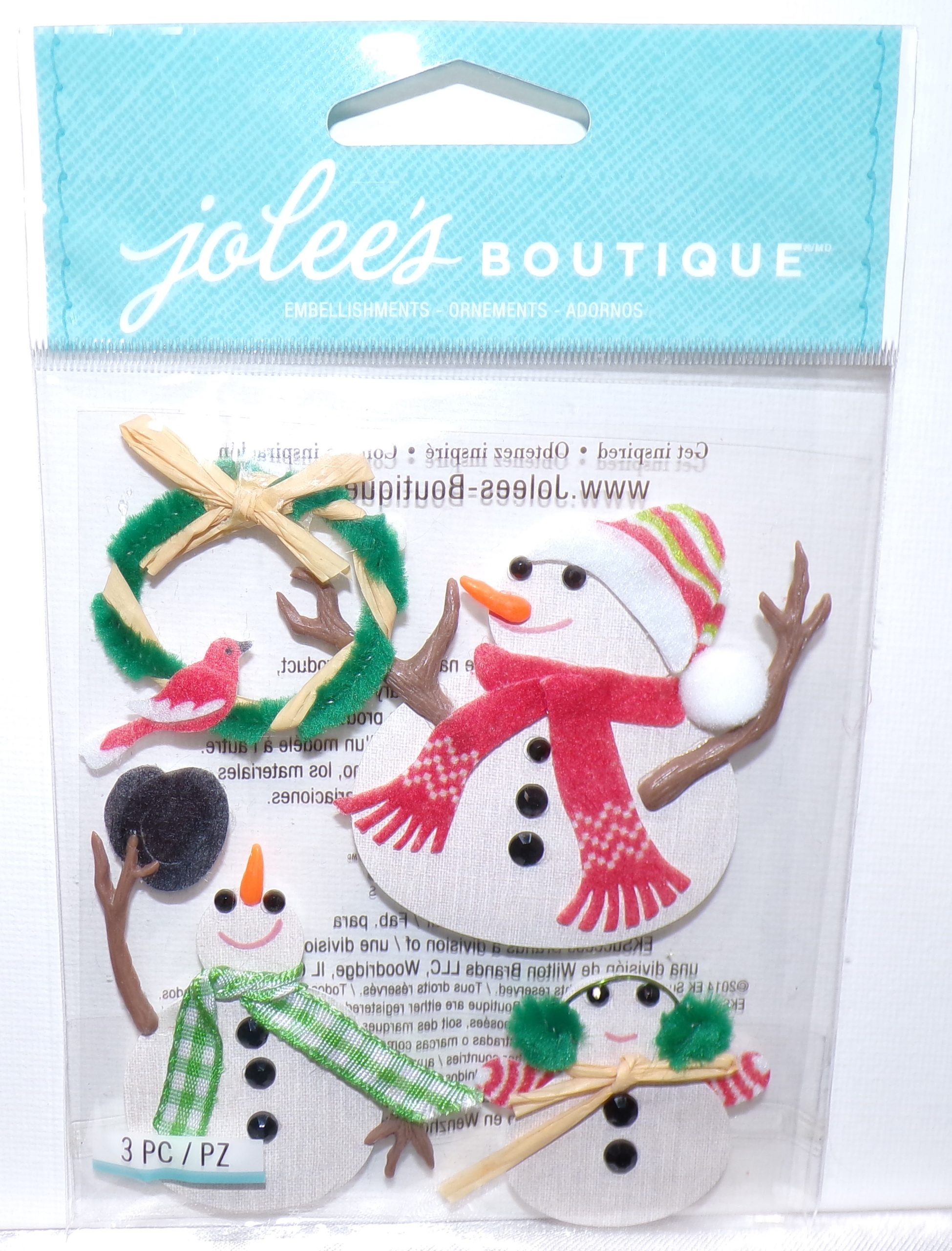 Add some seasonal charm to your scrapbooking projects with Jolee’s Boutique SNOWMEN stickers. These vibrant multi-colored stickers are perfect for adding a playful touch to your scrapbook pages, cards, and other paper crafts. With their dimensional design, they stand out and add depth to your creations.